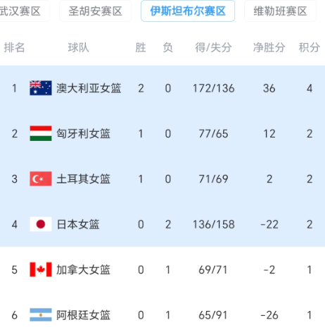 女篮世预赛悲喜夜:中国队惨败 日本遭澳大利亚逆转 最新排名出炉
